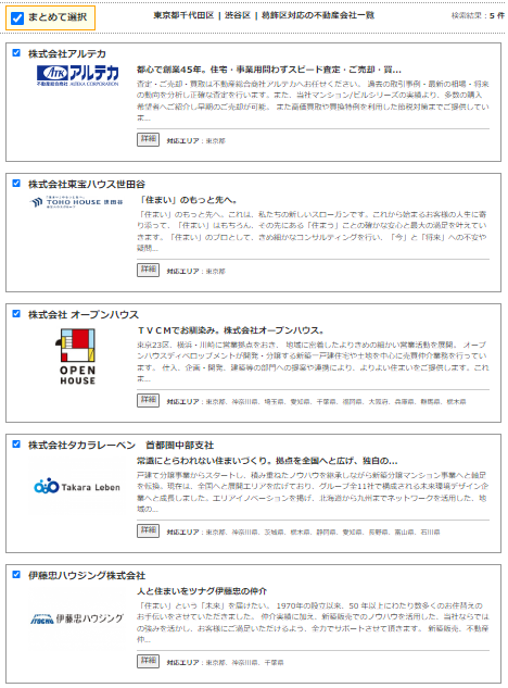 ⑪不動産会社のリストが表示されるのでチェックを入れておきましょう。(最初から全てチェックされています)